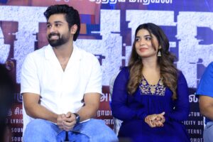 “மீடியா நண்பர்களுக்கு மனமார்ந்த நன்றி. அபின் சார் ஹாஸ்பிடலில் இருந்தபோது கதையைச் சொன்னார் — அப்போது காட்சிகள் என் கண்முன் தோன்றியது. டீம் முழுவதும் அர்ப்பணிப்புடன் உழைத்துள்ளது. கிராண்ட் பிக்சர்ஸ் மிக அற்புதமாக இப்படத்தை எடுத்துள்ளனர். ஆதித்யா புதுமுகம் போல இல்லை; மிகவும் நன்றாக நடித்துள்ளார். ஜிப்ரான் சார் இசை மிக சிறப்பாக உள்ளது. படம் அனைவருக்கும் பிடிக்கும் என நம்புகிறேன்.”