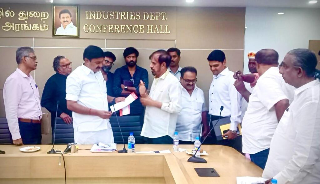 அமைச்சர் மு.பெ சாமிநாதன் அவர்கள் தமிழ்த்திரைப்பட தயாரிப்பாளர் சங்க நிர்வாகிகள், பெப்சி நிர்வாகிகள் மற்றும் நடிகர் சங்க நிர்வாகிகள் ஆகியோருடன் பேச்சுவார்த்தை