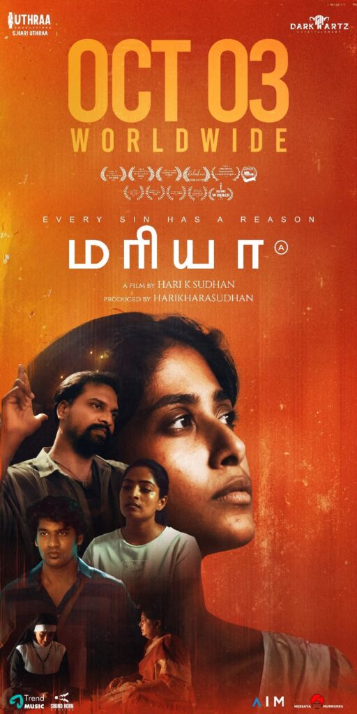சித்து குமரேசன், விக்னேஷ் ரவி, சுதா புஷ்பா, மற்றும் பலர் நடித்து அக்டோபர் 3 ல் வெளியாகும் படம் மரியா.